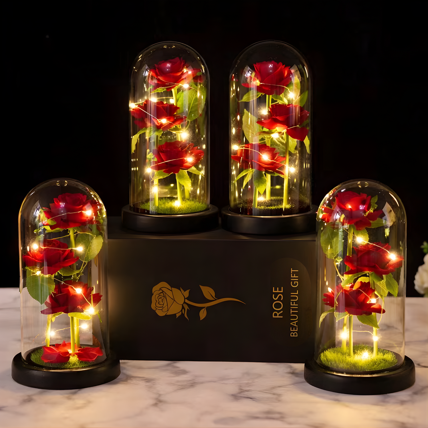 Wieczna róża w szkle z lampkami LED - romantyczna lampka