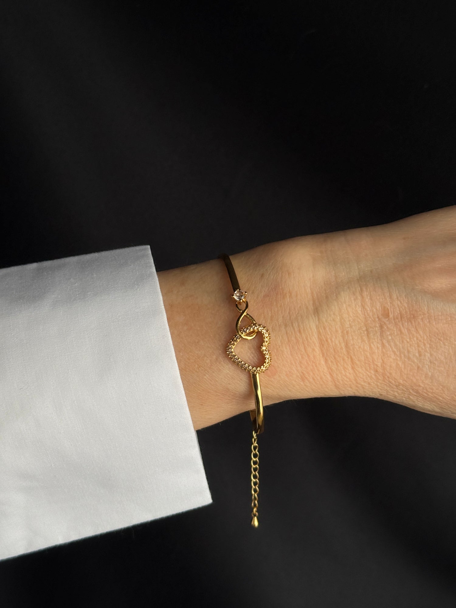 Złota bransoletka z sercem – pozłacana 18K złotem, elegancki prezent + kartka z wyznaniem